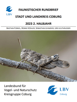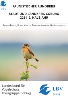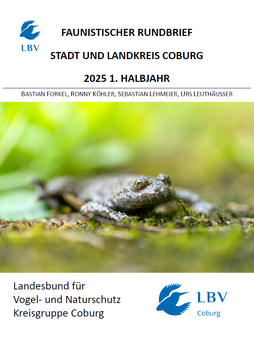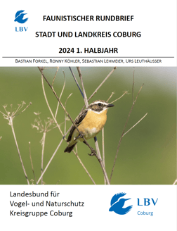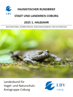 Unsere aktiven Mitglieder Bastian Forkel, Ronny Köhler, Sebastian Lehmeier und Urs Leuthäusser verfassen seit 2021 regelmäßig einen faunistischen Rundbrief für die Stadt und den Landkreis Coburg, der außergewöhnliche Beobachtungen in der Wildtierwelt im Coburger Land dokumentiert und seitdem zweimal im Jahr erscheint. Hier kann man ihn jeweils herunterladen: