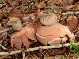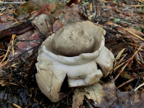 Neu für das Coburger Land war auch der Fund des Halskrausen-Erdsterns. Der Pilz gehört in die Gruppe der Bauchpilze und bekam seinen Deutschen Namen aufgrund des „Kragens“ um den Sporenbehälter. Fundort war ein Supermarktparkplatz im Stadtgebiet Coburg.