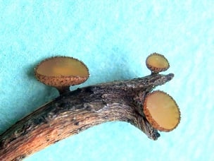 Als Beispiel für die meist sehr kleinen Ascomyceten kann der Ahorn-Blattstiel-Becherling (Rutstroemia kalevi) gelten, der auf Blattstielen von vorjährigem Ahorn-Laub wächst. Die zwei Millimeter kleinen Pilze lassen sich nur finden, wenn man am Boden kniet und die Streuschicht genau absucht. Eine Lupe mit zehnfacher Vergrößerung ist dabei unentbehrlich. Die Einstufung in der Roten Liste ist bei solchen nur selten entdeckten Arten nicht möglich und lautet „nb“, was bedeutet „nicht bewertet“.